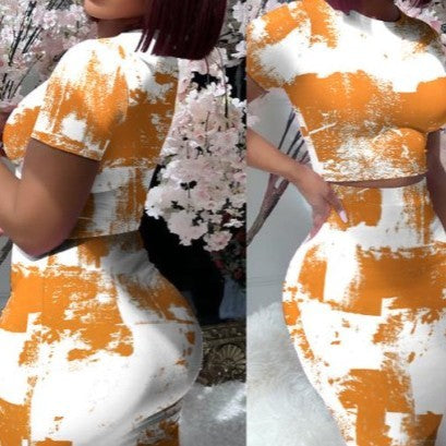 EMPIRE Women's Round Neck Short-sleeved T-shirt Hip Skirt